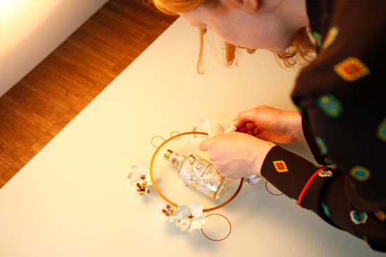 The briefing was quite open, so our whole set design turned out to be a fairly free interpretation of several graphic elements and surface materials that appear on the fragrance’s bottle label.