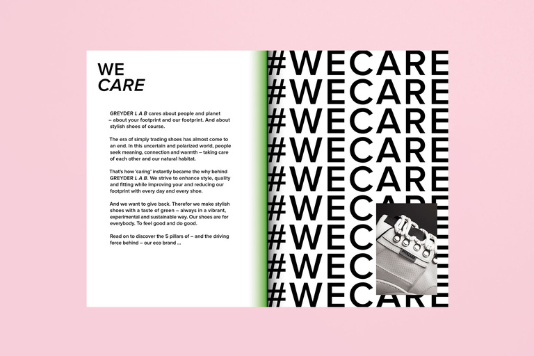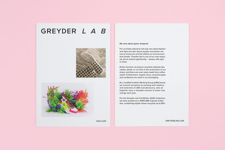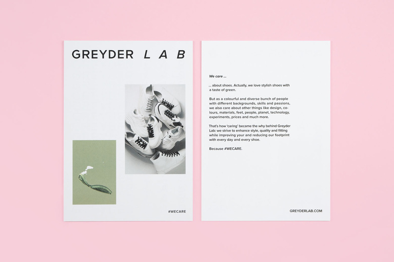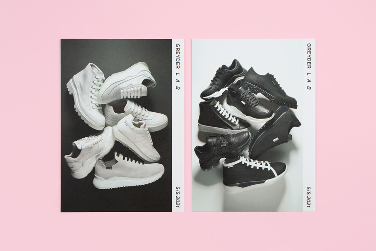 Corporate identity, branding, web appearance and content creation for ‘GREYDER L A B’ – a brand new and pretty sustainable shoe brand.