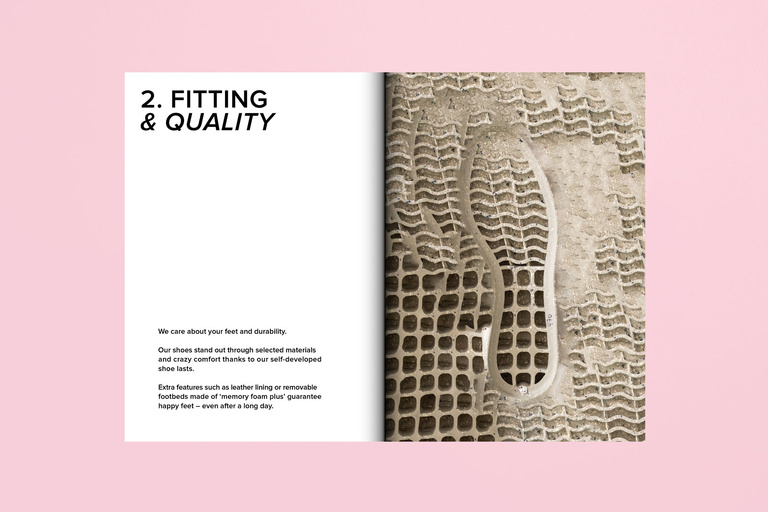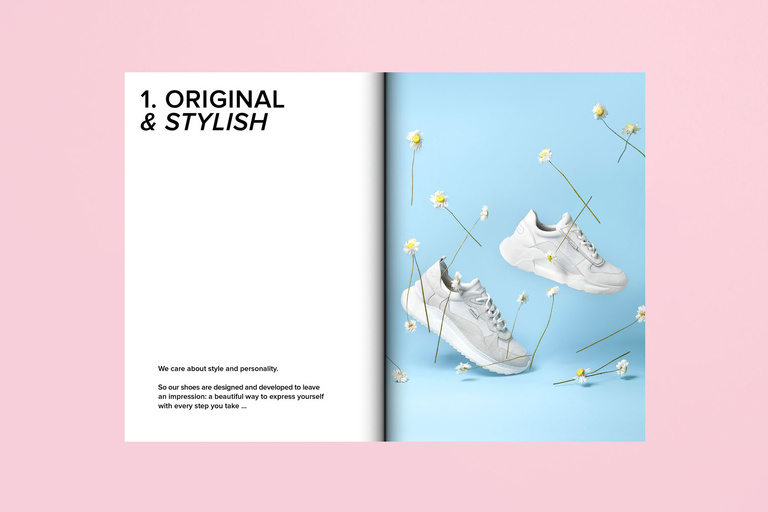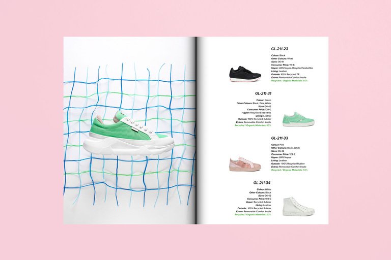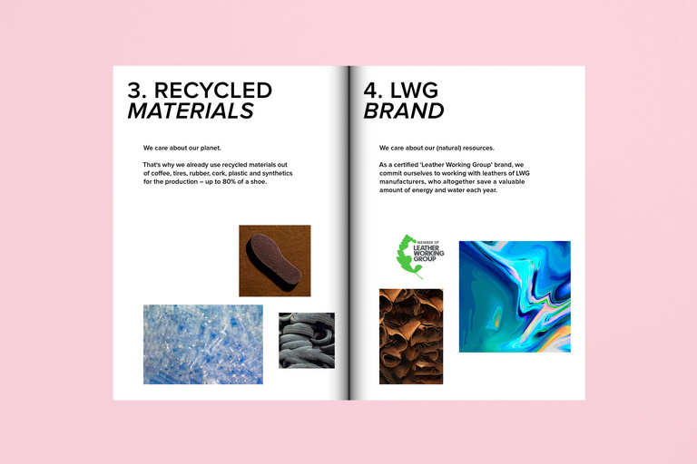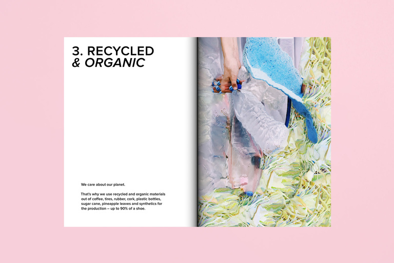 The task was to develop a fresh, colourful and dynamic (visual) language to not only communicate the original design and high quality of the shoes – made from up to 90% recycled and organic materials – but also the brand’s optimistic background, playful vibe and green approach:
