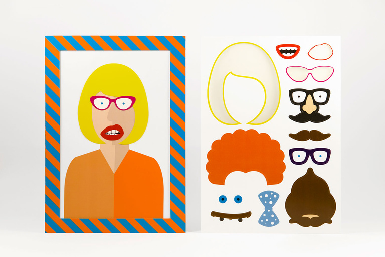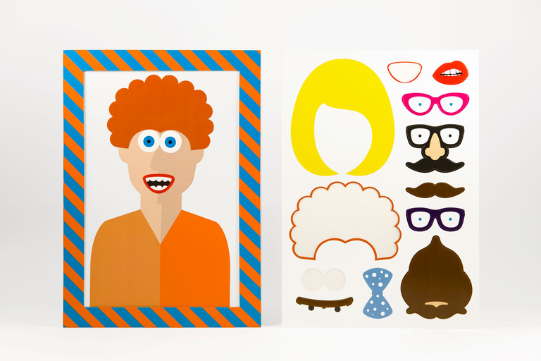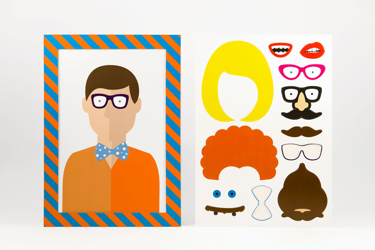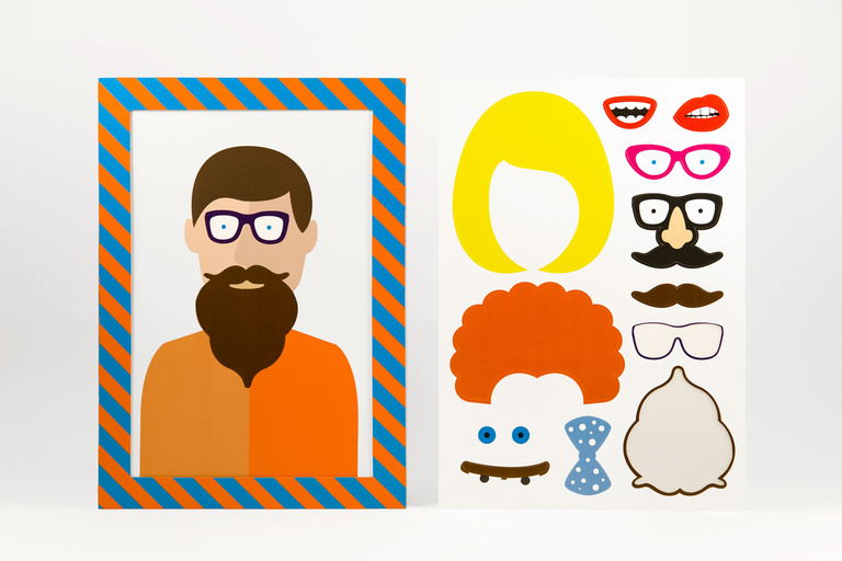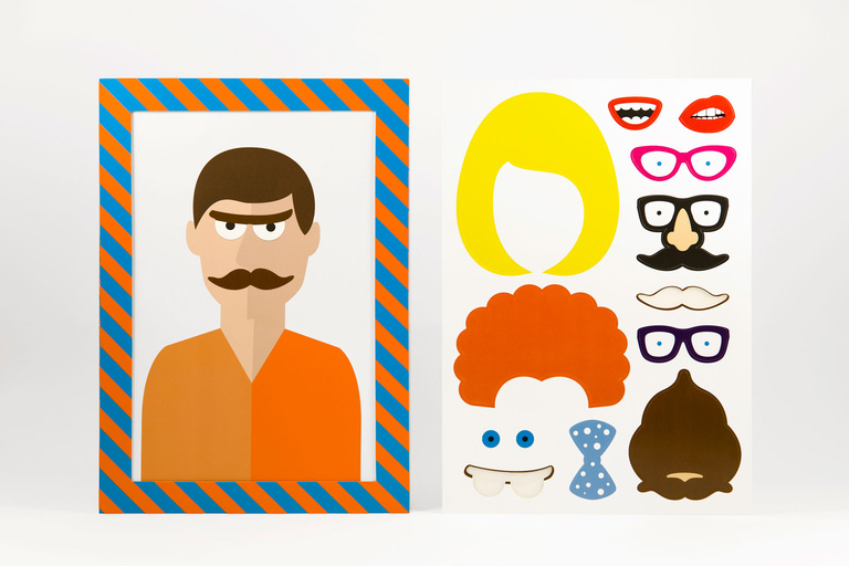 The invitation card was printed on special Yupo Tako paper by Papier Union, which works with tiny ‘cupping vessels’ instead of glue – so that all sticking parts are not only removable but also reusable to create many different funny faces over and over again …