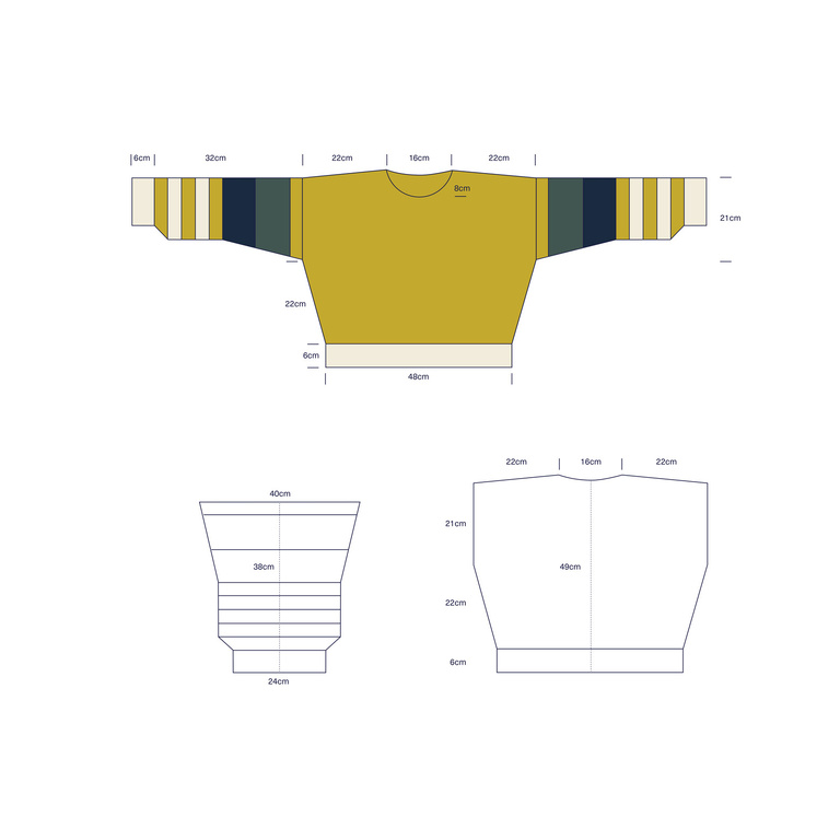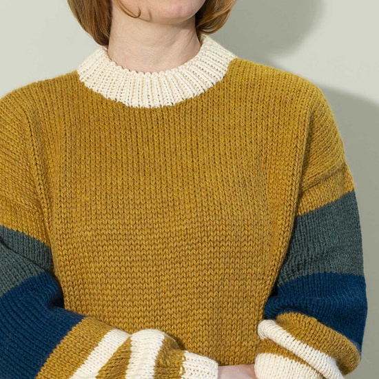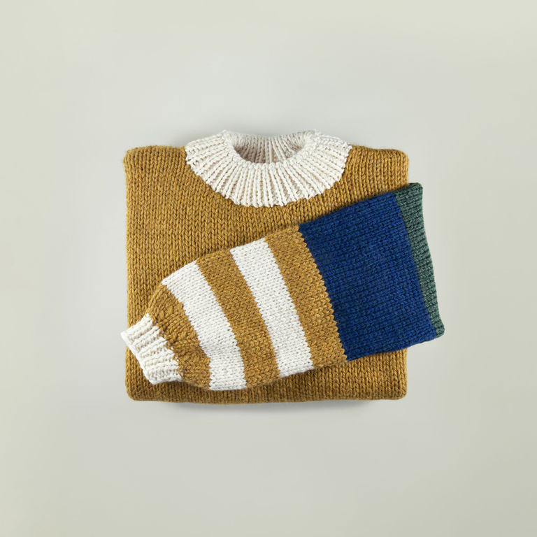 The ‘Milkmaid Sweater’ puts the focus on the original‘s minimalistic yet eyecatching (design) elements: vibrant colours and stylish stripes.
