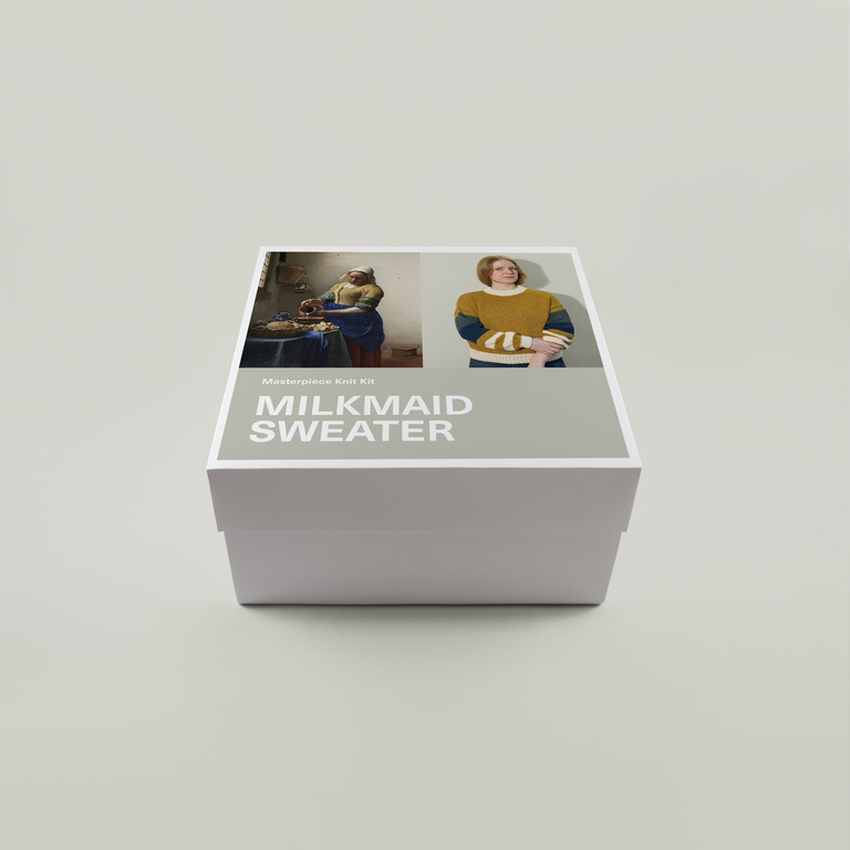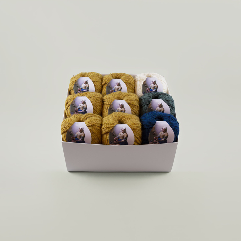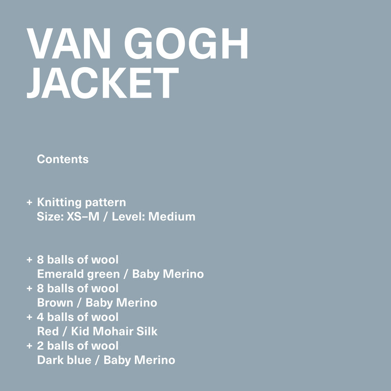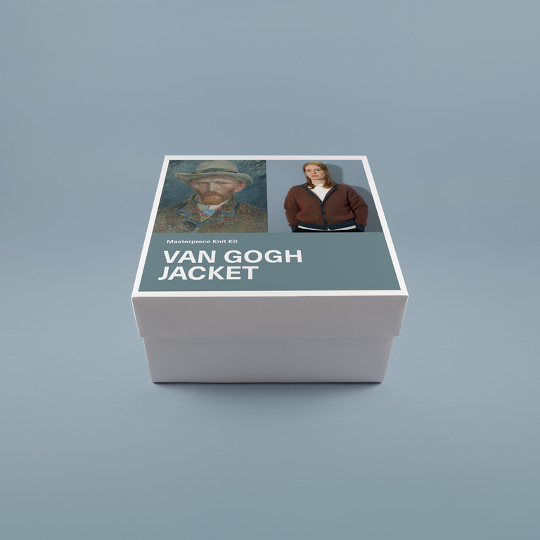 Two exclusive (knit) designs for a jacket and a sweater form the basis for the DIY ‘Masterpiece Knit Kits’ – containing all materials (wool, knitting pattern) to create a fashionable and modern interpretation of the iconic dresses that are pictured on two original masterpieces by van Gogh and Vermeer.