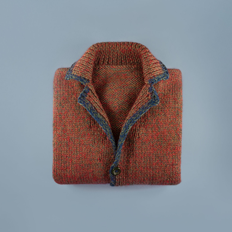 The ‘Van Gogh Jacket’ comes with the characteristic collar of van Gogh’s original jacket – and all parts of it are to be knitted with 3 threads held together, producing a multi-coloured effect that reminds of the master‘s unique painting style.
