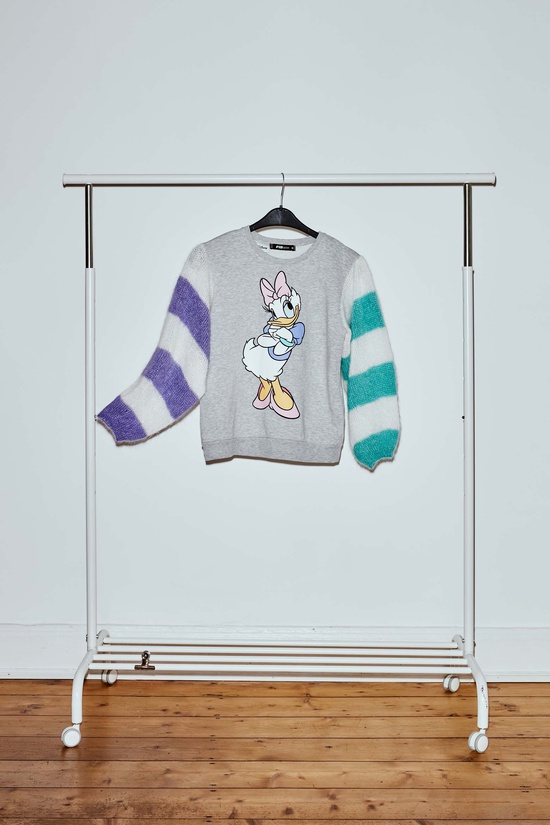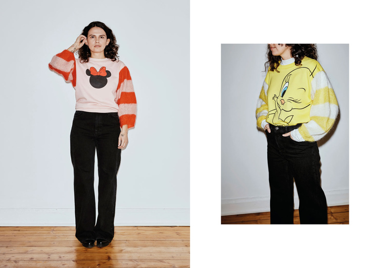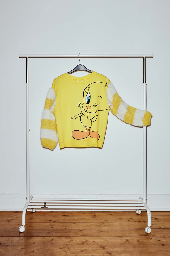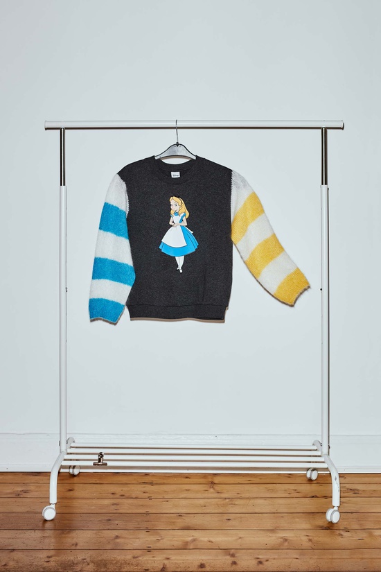 The very first collection ‘Sweaters with Character’ adds a whole new aesthetic and shape to the sweaters through knitted puff sleeves with stripes. Making the colour of the sleeves match each specific motif was a particular challenge. In some cases, the sleeves were knitted with two different coloured wool strands held together to achieve the best possible result. All hand-made ... All one of a kind.