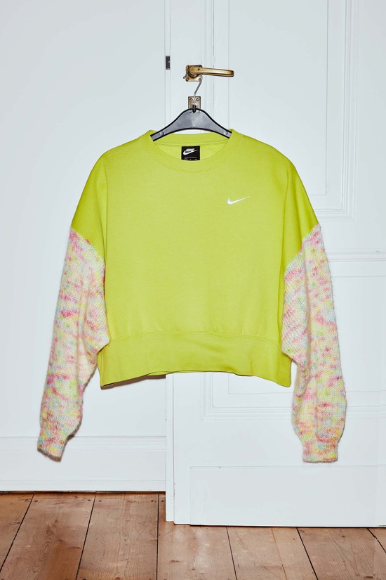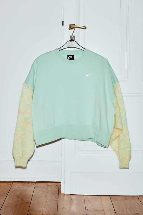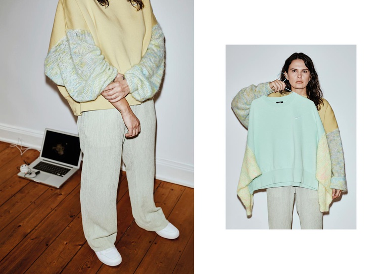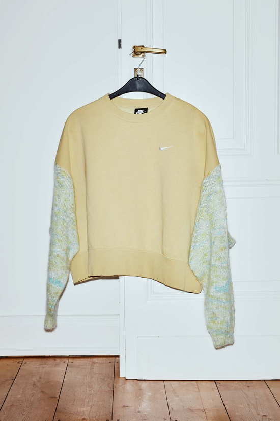 The original sleeves of the sweaters have been replaced by hand-knitted versions made of carefully colour-coordinated, hand-dyed wool. In this way, we wanted to transform each piece from a mass-produced product into a unique item with added value, which the owner will hopefully enjoy not only for weeks – but for years to come.
