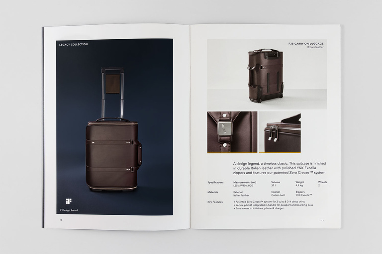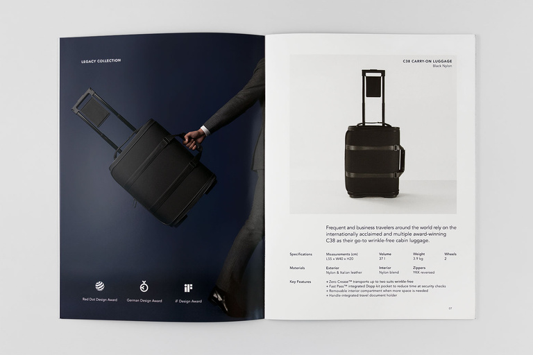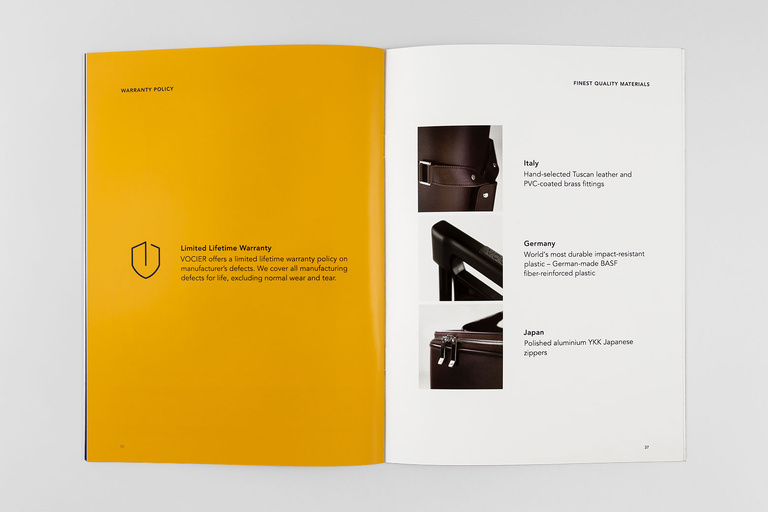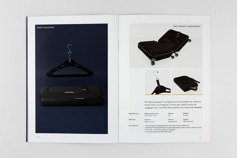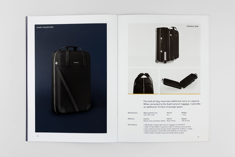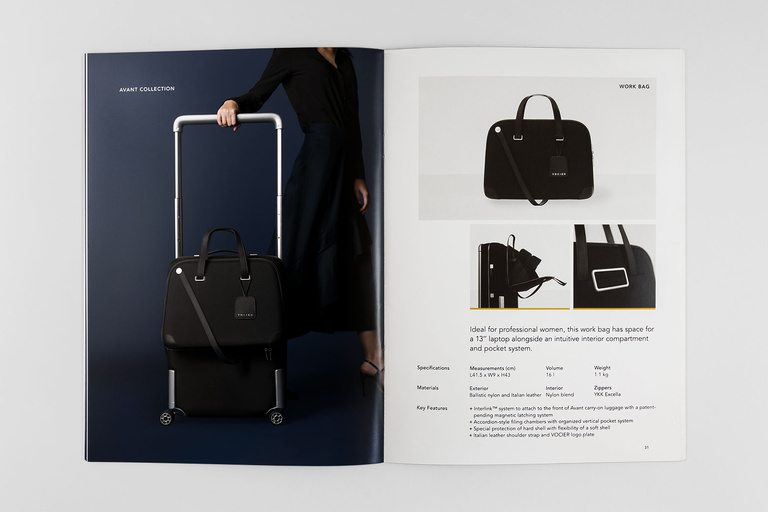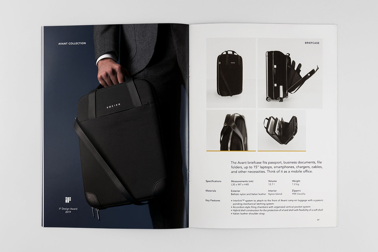 Editorial design for the 2019 product catalogue of ‘VOCIER’ – showing the world’s most awarded premium luggage and its purposeful functionality in the best light …