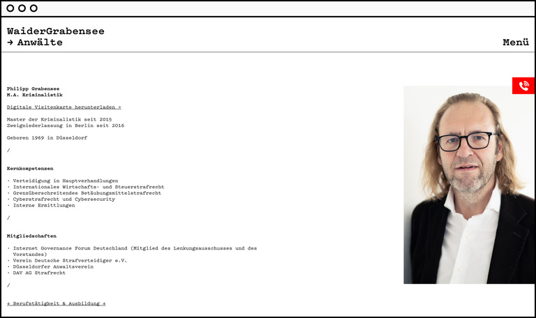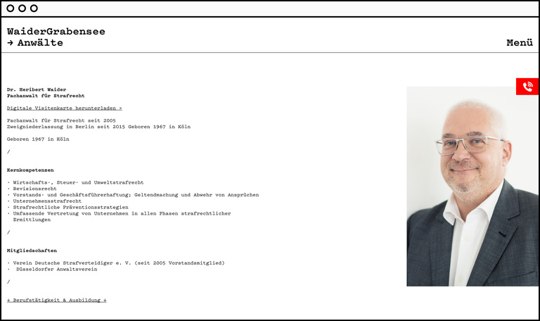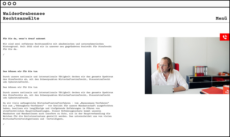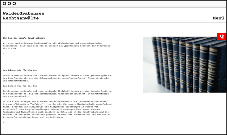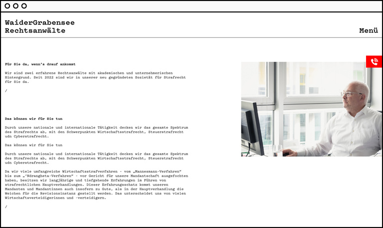 Corporate identity and web appearance for ‘WaiderGrabensee’ lawyers.