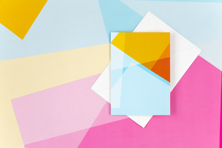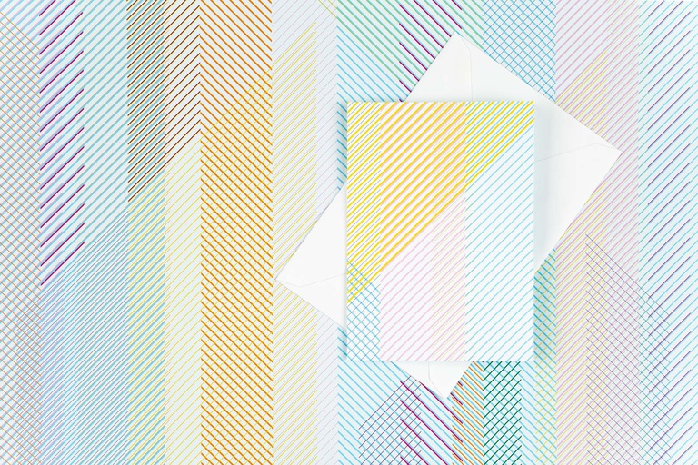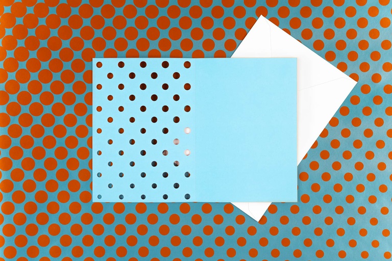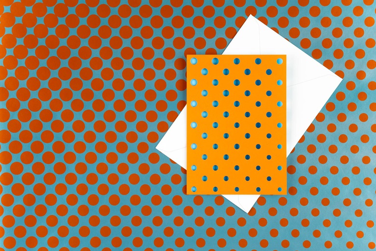 Set of 6 different wrapping papers and matching greeting cards – featuring different materials as well as various printing and finishing techniques such as screen printing, embossing, die-cutting or varnishing …